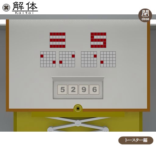 上の図形に下の赤い点を組み合わせると、『5296』となる。