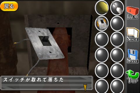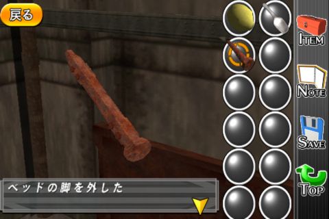 脱獄:密室からの脱出 プリズンブレイク 無料 3.5 評価する 送信する 攻略その12 床の皿を拡大。 「レモン」と「アルミのスプーン」を入手。 右に移動して、「ベッドの脚」を外す。 ベッドを上にフリックして持ち上げる。 『ceiling』の文字を調べると、上に視点移動する。 右に移動。 壁の色が違う部分を拡大して、パネルを取る。 「アルミのスプーン」でスイッチカバーの上下のネジを外す。 「ベッドの脚」を選択。 穴に挿して「スイッチ」を入手。 攻略その1 攻略その2 攻略その3 攻略その4 攻略その5 攻略その6 攻略その7 攻略その8 攻略その9 攻略その10 攻略その11 攻略その12 攻略その13 攻略その14 攻略その15 攻略その16 攻略その17