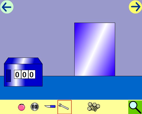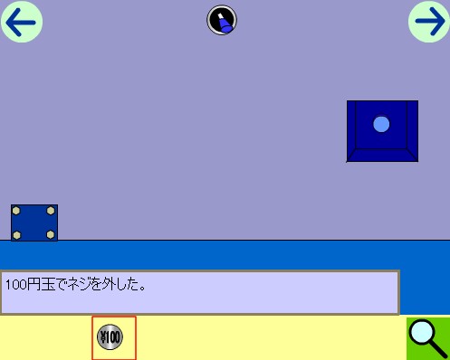 反対側に移動して、左下のパネルに「レンチ」を使って「ボルト」を入手。
