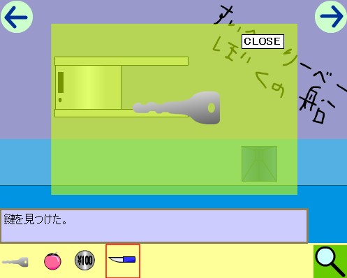 「ゴムボール」を「ナイフ」で切って、「鍵」を入手。