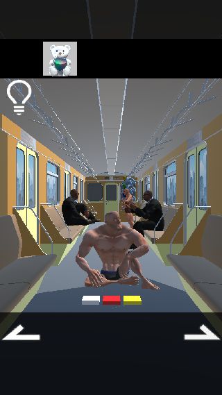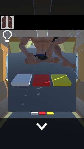 床のボタンを『白(イカ)、赤(リンゴ)、黄(キリン)』に合わせる。