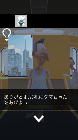 反対側に移動して、座っている男に「ぬいぐるみ」を使う。