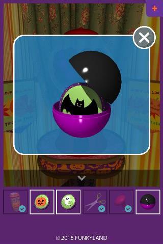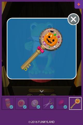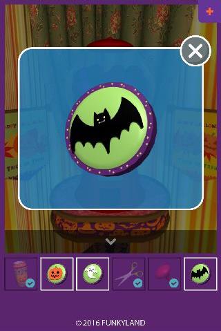 下を拡大して、左から「コウモリのメダル」、「カボチャのメダル」、「オバケのメダル」をはめる。