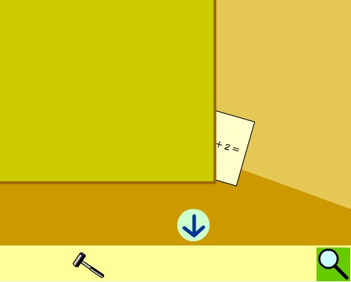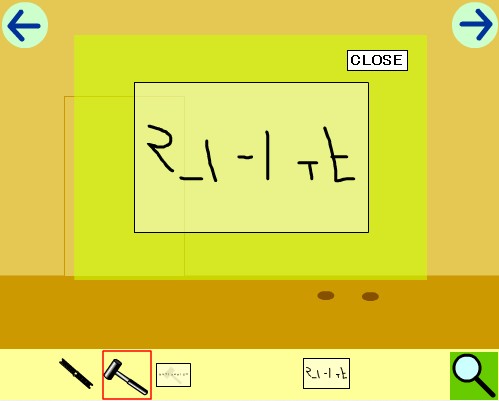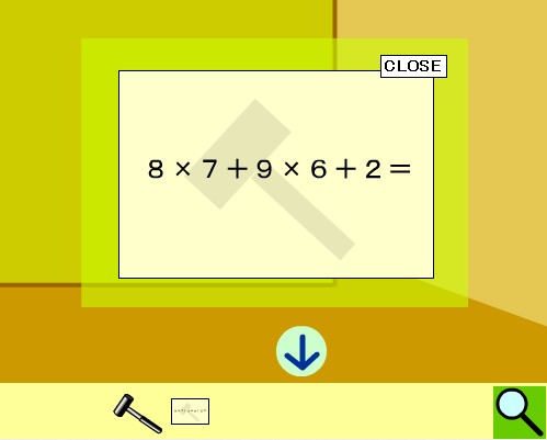 左に移動して、「ハンマー」で壁の記号を『×8回、+7回、×9回、+6回、=2回』叩く。