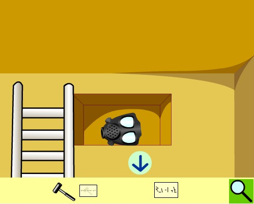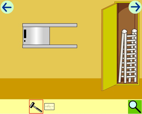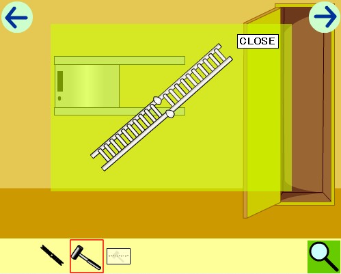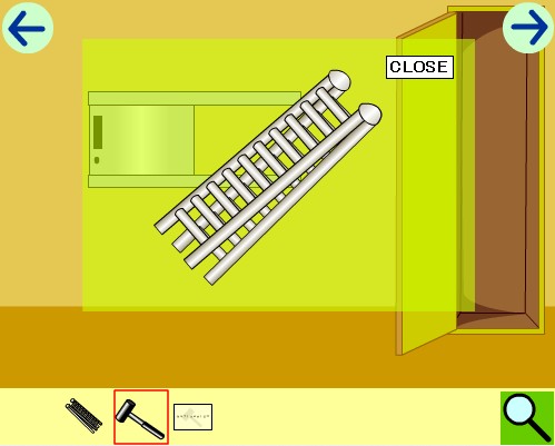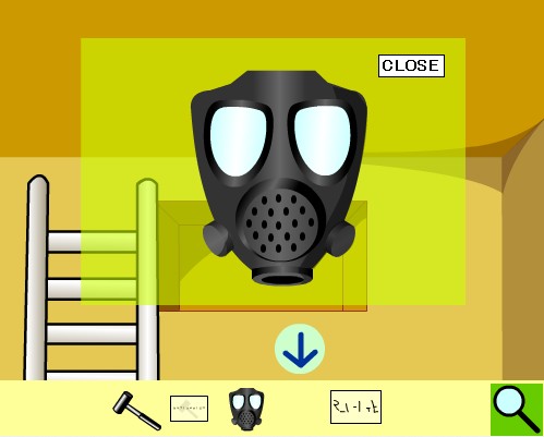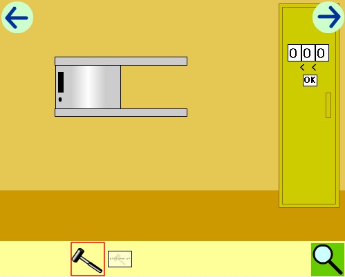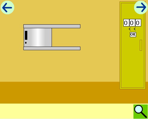 ロッカーの謎は、左画面の床の『△』、ボタンの『○』、壁全体の大きい『□』を小さい順で『△○□』に合わせる。