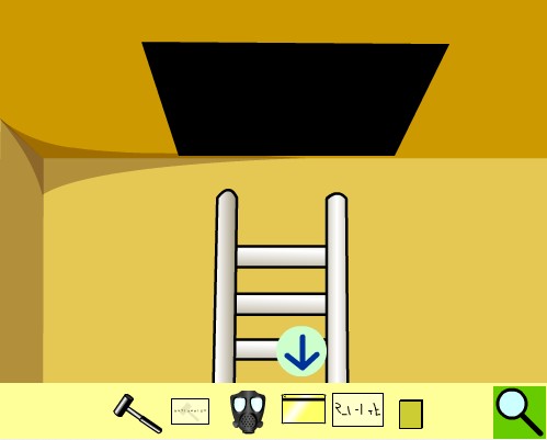 「ハシゴ」を掛けて、天井の穴から脱出。