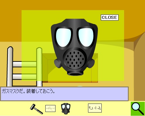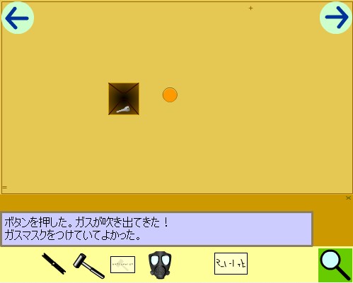 「ガスマスク」を入手して調べていないとゲームオーバー。