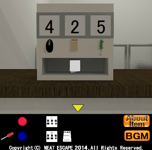 銀行内にあるマウス、マッチ、観葉植物の数を数えて、『425』に合わせる。