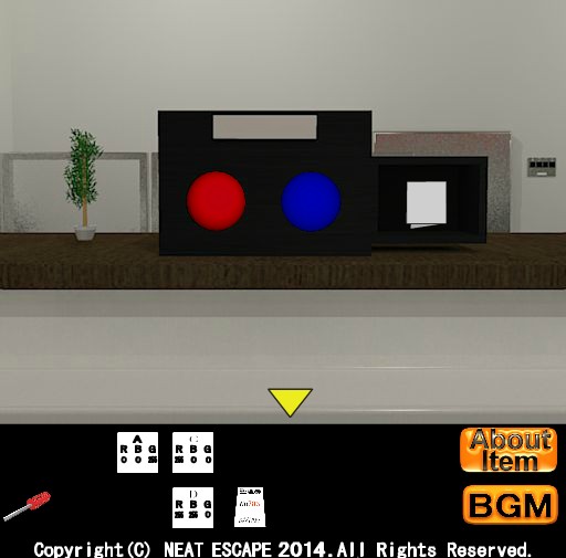 「赤いボール」と「青いボール」をはめて、上のボタンを押す。