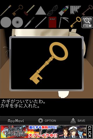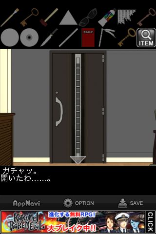 脱出ゲーム "嫉妬の檻" 無料 0 評価する 送信する IDAC CO.,LTD.(WaveA PTE.LTD.) 攻略その9 テレビの前へ。 左の穴に「棒」を使ってネコを誘い出す。 ネコの首から「カギ」を入手。 前の部屋に移動。 扉に「カギ」を使う。 脱出。 攻略その1 攻略その2 攻略その3 攻略その4 攻略その5 攻略その6 攻略その7 攻略その8 攻略その9