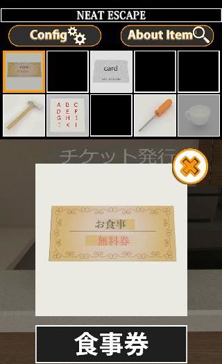 脱出ゲーム ビジネスホテルからの脱出 無料 3.0 評価する 送信する NEAT ESCAPE エンディング3の出し方 「青い鍵」を入手してから、カウンターの前へ。 左のチケット発行機を拡大。 「青い鍵」を入れて、「食事券」を入手。 左奥のレストランの扉を開けて、エンディング3へ。 攻略その1 攻略その2 攻略その3 攻略その4 攻略その5 エンディング2の出し方 エンディング3の出し方