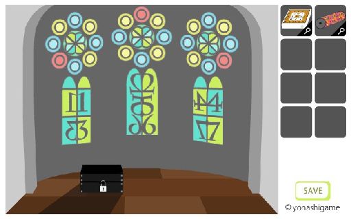 右に移動して、ステンドグラスの数字の配置を確認。