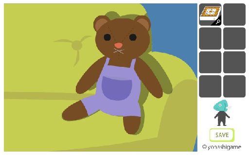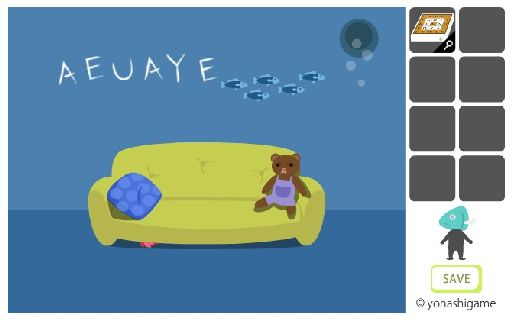 壁の『AEUAYE』を確認して、ソファーのぬいぐるみを拡大。