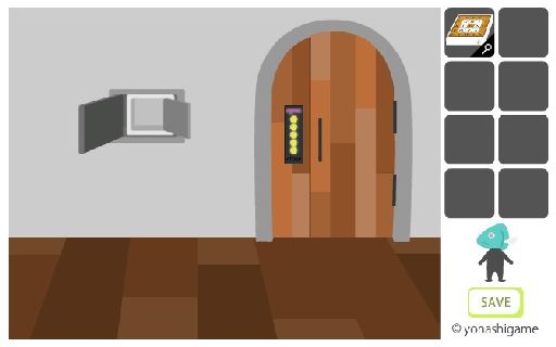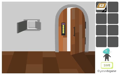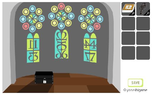 壁の金庫を拡大して、ステンドグラスの数字をヒントに『左上左右上上右』の順で押す。