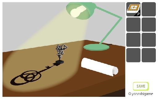 ライトに「電球」をはめて、「影のカギ」を入手。