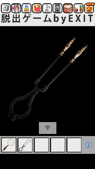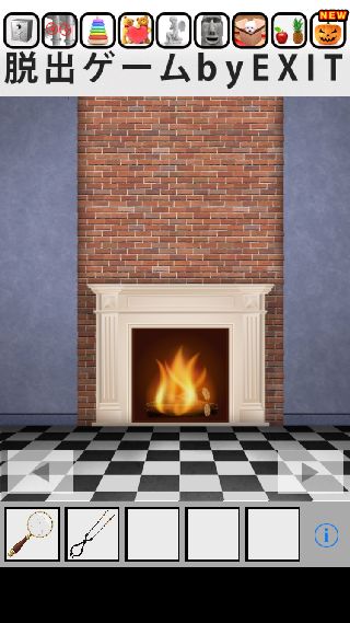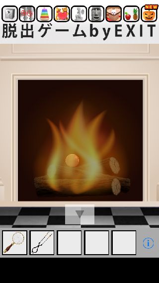 暖炉を拡大して、「火バサミ」を使って「ボタン」を入手。