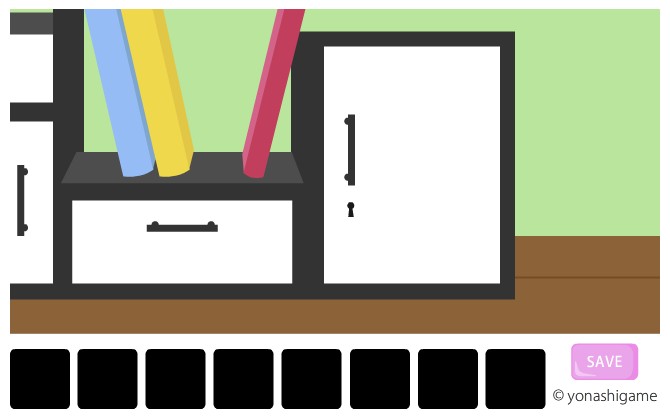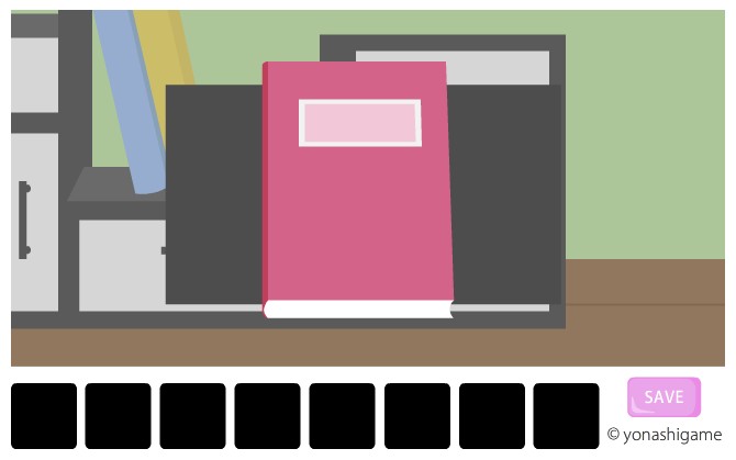 棚の右側を拡大して、赤い本を調べる。