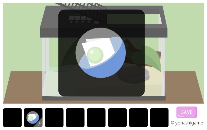 反対側に移動して、水槽を拡大。