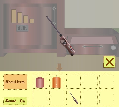 「コイン」で右の引き出しを開けて、「チャッカマン」を入手。