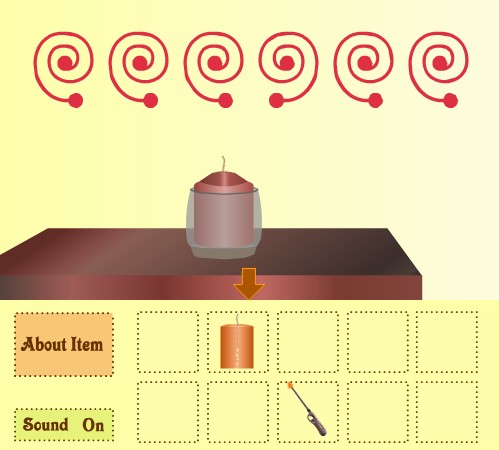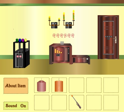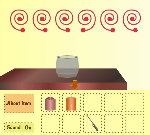 最初の部屋に戻って、棚の上を拡大。