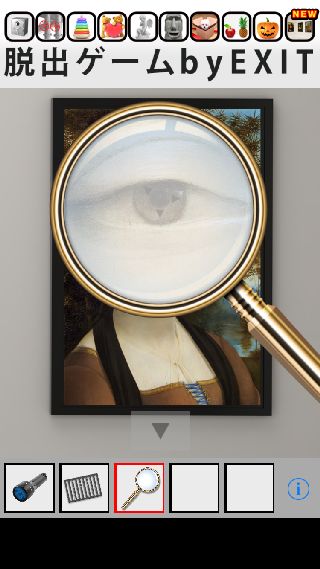 「虫眼鏡」を使って、目の中の『左上、右、下』の黒い▲を確認。
