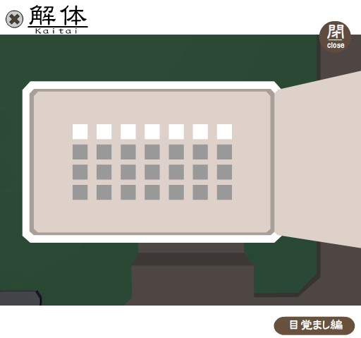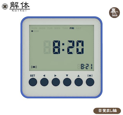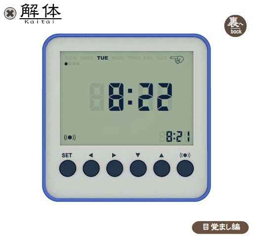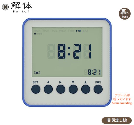 一番右のボタンでアラームをセットして、SETを解除して1分待つ。