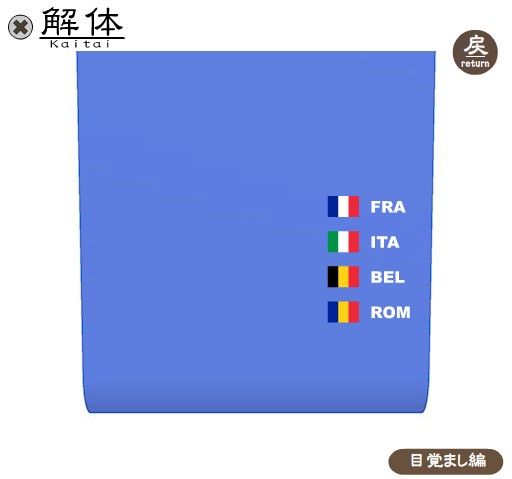 左下の側面を調べて、『TIME』の文字に該当する国旗の色『T=白、I=緑、M=赤、E=黄』を確認。