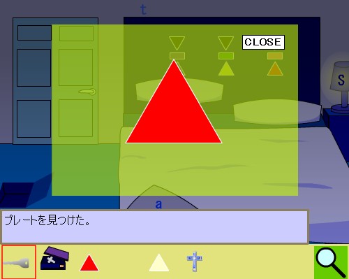 ベッドの右奥を調べて、「青いプレート」を入手。
