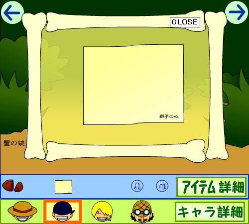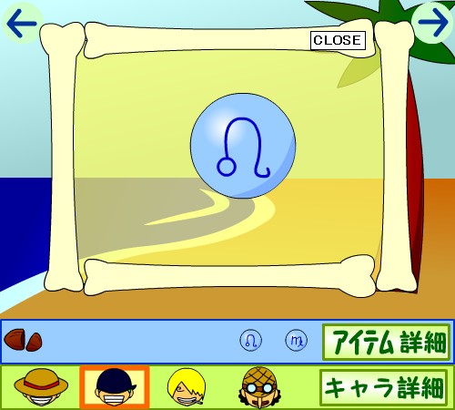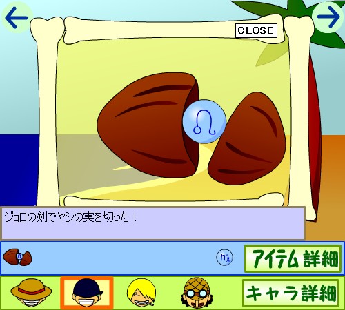ジョロの剣で切って、「ガラス玉(獅子座)」を入手。