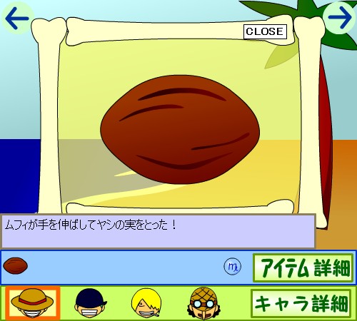 左に移動して、ムフィの力で「ヤシの実」を入手。