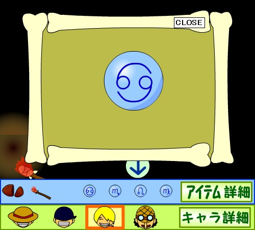 左下を調べて、「ガラス玉(蟹座)」を入手。