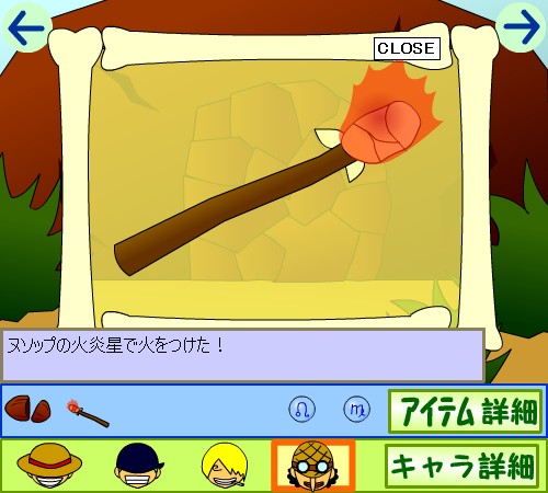 「枝」に「布」を巻き付けて、ヌソップの火炎星で火をつける。