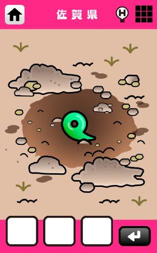 日本横断!ナゾ解きトラベル西の章 無料 0 評価する 送信する Contentsgate Inc. 佐賀県 門番を移動させ集落へ入ろう! 左の柵から「鍬」を入手。 右下の地面を「鍬」で掘って調べる。 「緑の勾玉」を入手して、門番を拡大。 首飾りに「緑の勾玉」を付けて、手前へ。 門番をタップしてどかす。 沖縄県 宮崎県 佐賀県 福岡県 長崎県 大分県 鹿児島県 熊本県 愛媛県 高知県 香川県 徳島県 島根県 広島県 岡山県 鳥取県 山口県 兵庫県 奈良県 和歌山県 京都府 大阪府