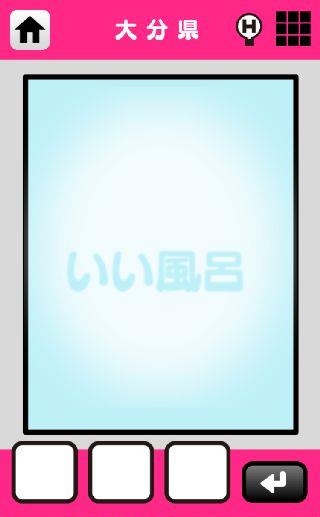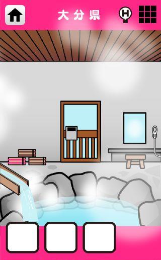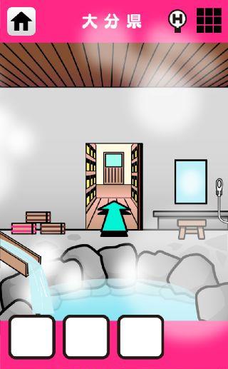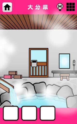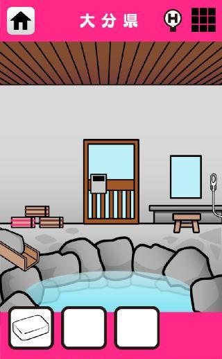 日本横断!ナゾ解きトラベル西の章 無料 0 評価する 送信する Contentsgate Inc. 大分県 岩風呂から脱出しよう! 左奥の箱から「石鹸」を入手。 風呂の左に「石鹸」を使って、右奥の鏡を拡大。 『いい風呂=1126』の語呂合わせになる。 扉の装置を『1126』に合わせる。 扉を開ける。 沖縄県 宮崎県 佐賀県 福岡県 長崎県 大分県 鹿児島県 熊本県 愛媛県 高知県 香川県 徳島県 島根県 広島県 岡山県 鳥取県 山口県 兵庫県 奈良県 和歌山県 京都府 大阪府