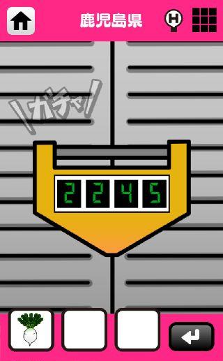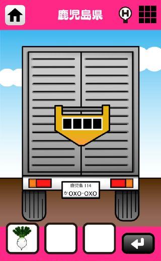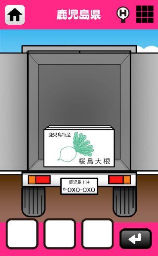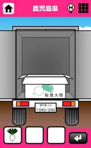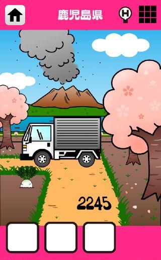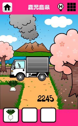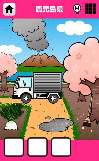 日本横断!ナゾ解きトラベル西の章 無料 0 評価する 送信する Contentsgate Inc. 鹿児島県 トラックを移動させ桜島へ向かおう! 左下から「大根」、右から「ホウキ」を入手。 「ホウキ」で道を掃いて、『2245』を確認。 トラックの後ろを調べる。 『2245』に合わせる。 箱の中に「大根」を入れる。 手前に戻って、トラックを動かす。 沖縄県 宮崎県 佐賀県 福岡県 長崎県 大分県 鹿児島県 熊本県 愛媛県 高知県 香川県 徳島県 島根県 広島県 岡山県 鳥取県 山口県 兵庫県 奈良県 和歌山県 京都府 大阪府
