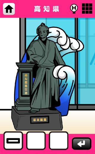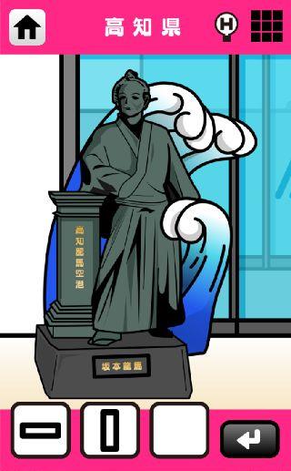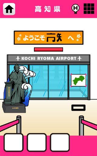 日本横断!ナゾ解きトラベル西の章 無料 0 評価する 送信する Contentsgate Inc. 高知県 空港から脱出しよう! 右の地図をタップする。 落ちてきた「口」を入手。 左の竜馬像を拡大。 2ヶ所を調べて、「口」を2つ入手。 上の看板に3つの「口」をはめる。 沖縄県 宮崎県 佐賀県 福岡県 長崎県 大分県 鹿児島県 熊本県 愛媛県 高知県 香川県 徳島県 島根県 広島県 岡山県 鳥取県 山口県 兵庫県 奈良県 和歌山県 京都府 大阪府
