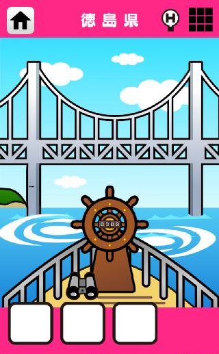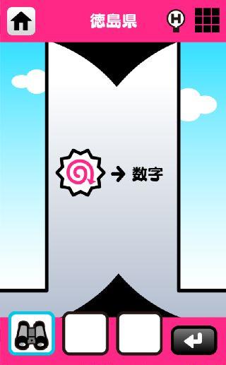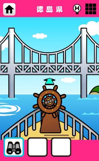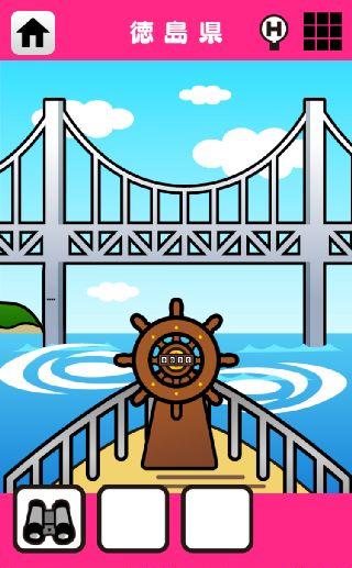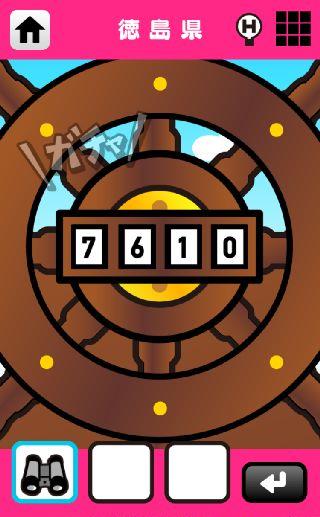 日本横断!ナゾ解きトラベル西の章 無料 0 評価する 送信する Contentsgate Inc. 徳島県 渦潮を回避し海峡から脱出せよ! 左下から「双眼鏡」を入手。 左の柱に「双眼鏡」を使って、暗号を確認。 『なると』を語呂合わせで数字にすると、『7610』となる。 舵を拡大。 『7610』に合わせて、手前に戻る。 右側をタップして、渦潮を避ける。 沖縄県 宮崎県 佐賀県 福岡県 長崎県 大分県 鹿児島県 熊本県 愛媛県 高知県 香川県 徳島県 島根県 広島県 岡山県 鳥取県 山口県 兵庫県 奈良県 和歌山県 京都府 大阪府