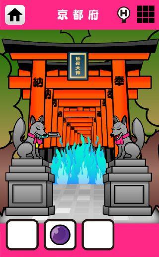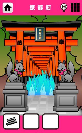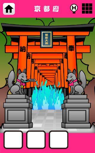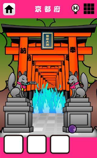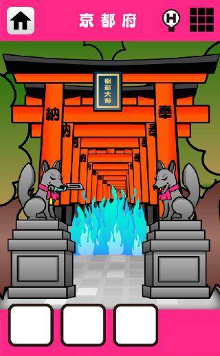 日本横断!ナゾ解きトラベル西の章 無料 0 評価する 送信する Contentsgate Inc. 京都府 炎を消し鳥居の先へ進もう! 落ちている「カギの一部」を入手。 左のキツネに「カギの一部」を使う。 右奥の鳥居の柱を拡大。 手前に戻って、端末を左に傾ける。 「玉」を入手して、右のキツネに使う。 沖縄県 宮崎県 佐賀県 福岡県 長崎県 大分県 鹿児島県 熊本県 愛媛県 高知県 香川県 徳島県 島根県 広島県 岡山県 鳥取県 山口県 兵庫県 奈良県 和歌山県 京都府 大阪府