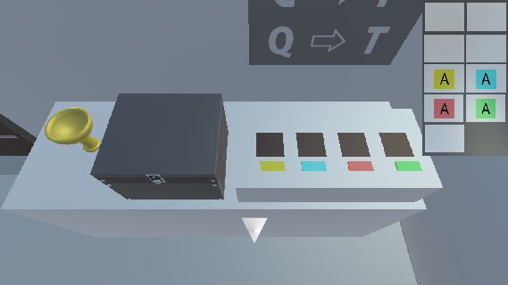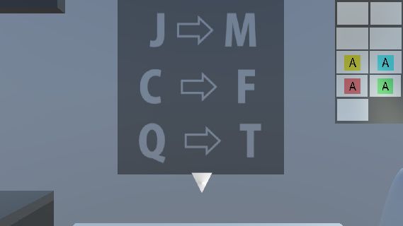 額の頭文字が『黄B、青U、赤F、緑Q』だったので、3つずらして『EXIT』に合わせる。