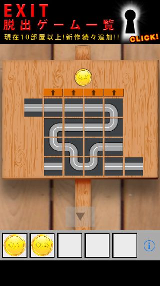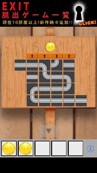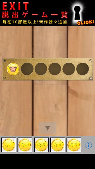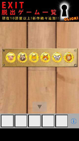 『ブタ→タヌキ→キツネ→ネコ→コアラ→ライオン』と、しりとりで繋がるように「コイン」をはめる。