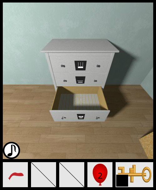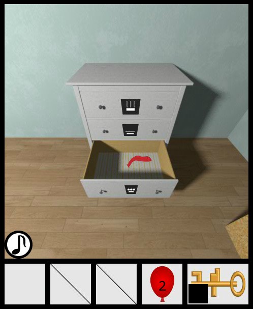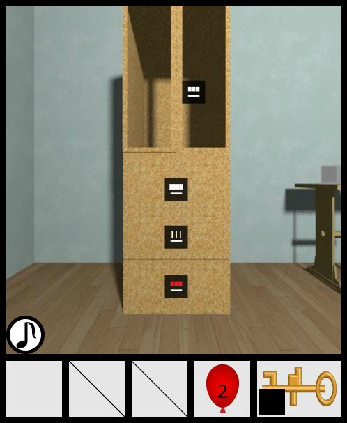 一番下の引き出しを拡大して、壁の風船の色『赤青黄』に合わせる。
