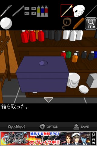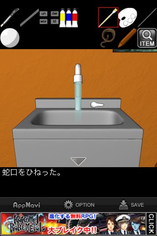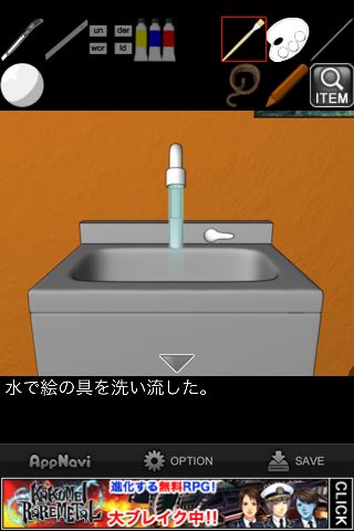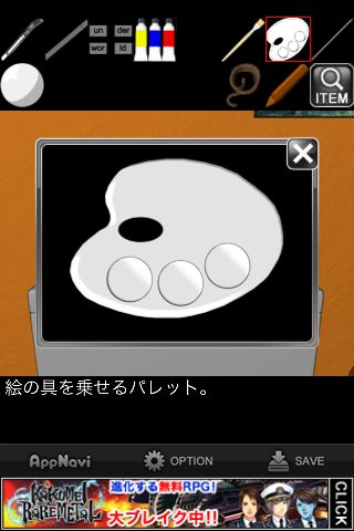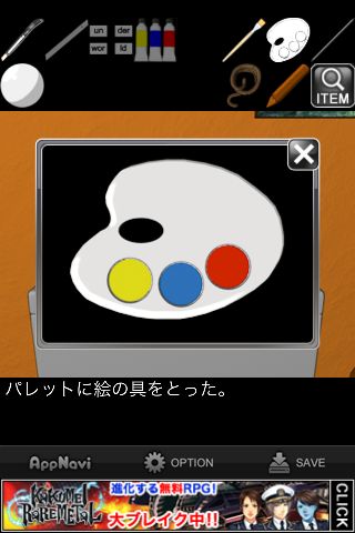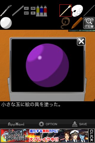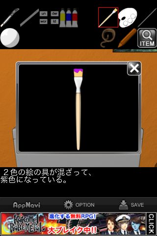 「筆」で赤い絵の具→青い絵の具を順に塗る。