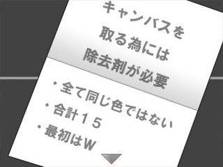 黄色い本から落ちたメモにヒントが書かれており、『全て同じ色ではない』は白と黒の記号があるという事、『合計15』は記号の角の数を足すと15になる。『最初はW』は『W=White=白』を表している。