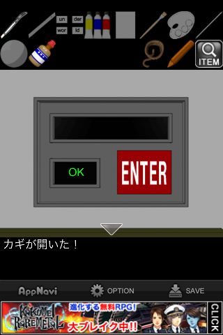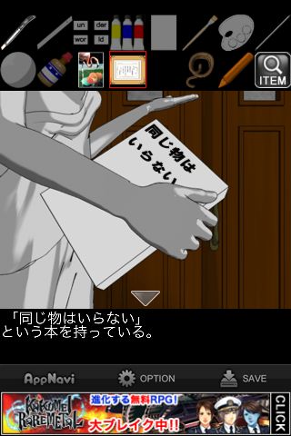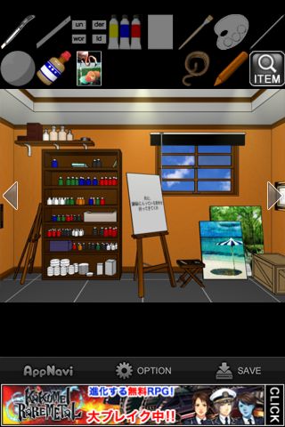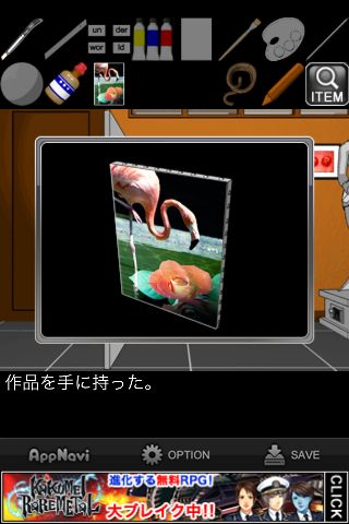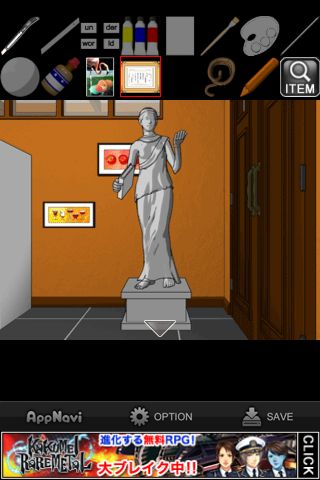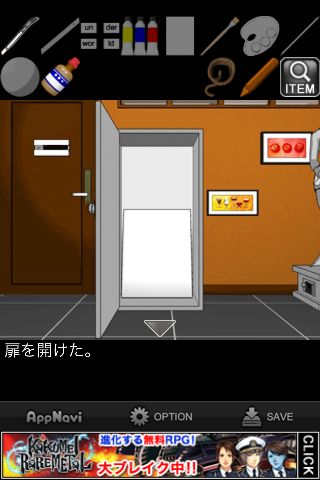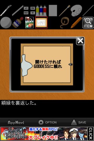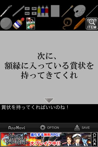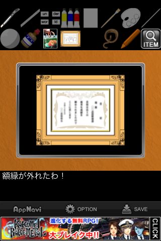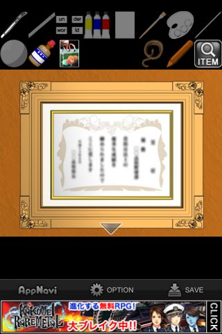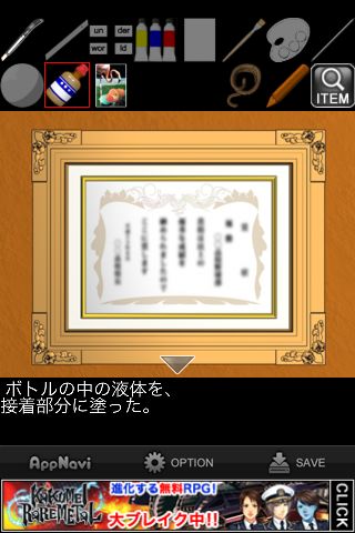 左の壁の賞状が入った額を調べて「ボトル」の液体をかける。