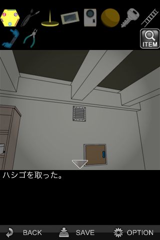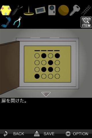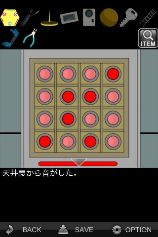 天井裏で見た模様を上下逆にしたボタンを押す。(一応、下に書かれた線が上下逆にするヒントになっている。)