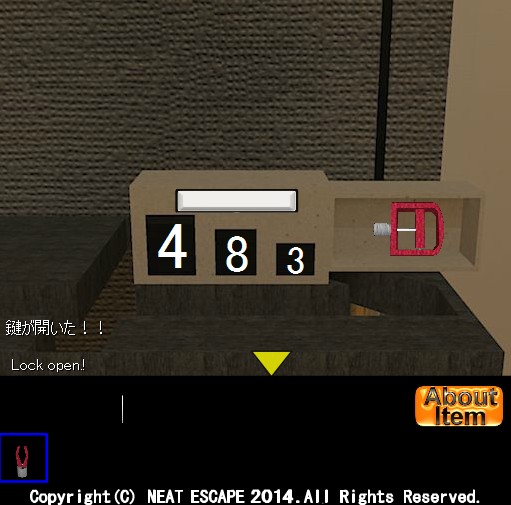 天井を調べて、「マジックハンド」を使って「鍵」を入手。