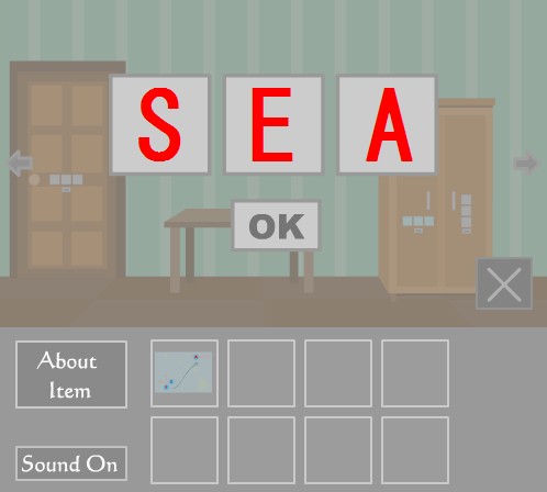 「地図」に「穴の空いた紙」を重ねて、『SEA』を確認。