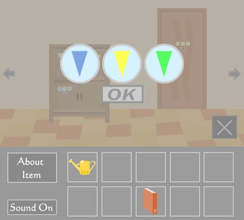 テーブルの上に「花瓶」を置いて、『緑=左上、青=上、黄=右上』を確認。