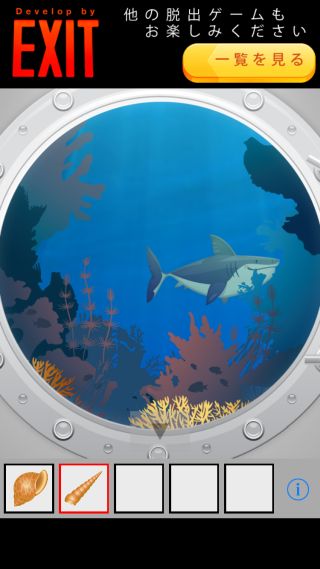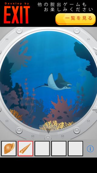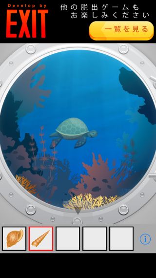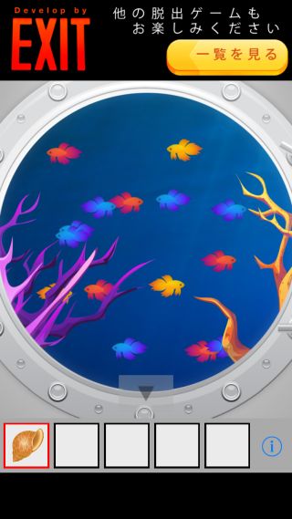 「巻き貝」を吹いて、高速で横切る魚を確認する。