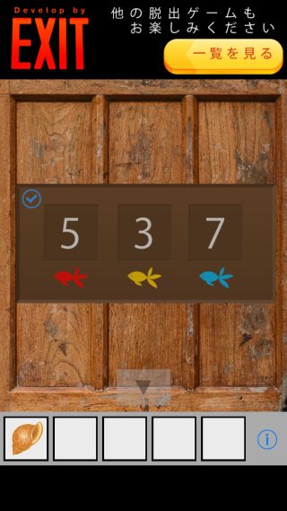 扉の左上の装置を拡大して、『赤5、黄3、青7』に合わせる。
